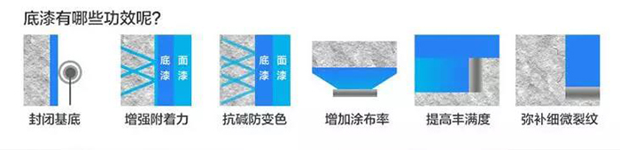 我們都知道建筑外墻基材多為水泥砂漿或混凝土表面,其特點是多空隙、堿性強。其中多孔結構使其吸水性強,致使真石漆涂層表面不夠光滑,容易引起涂膜起皺,并可能導致涂膜干燥過快而引起面漆開裂浪費面漆。堿性強可以導致涂料中樹脂的化學降解,加速涂膜老化,減少涂層的使用期限,甚至泛白、返堿。