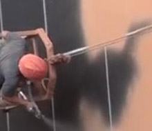 真石漆噴涂機(jī)工地吊籃施工現(xiàn)場(chǎng)(圖文)